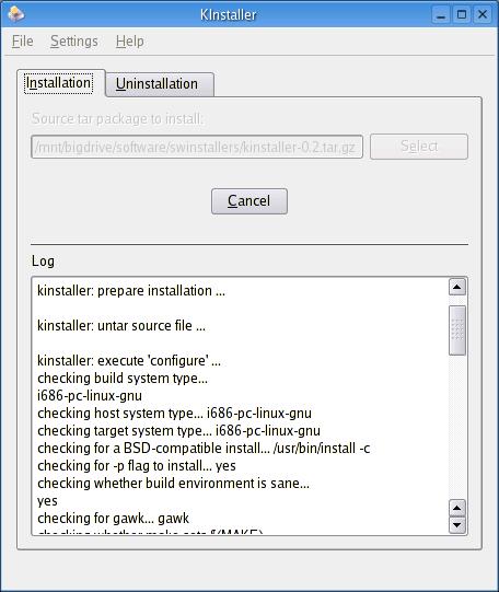 Figure 2. KInstaller handles every step of the extract-and-build five-step.