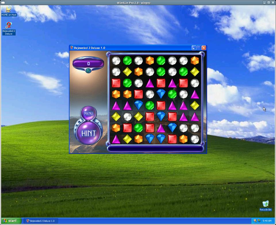 Figure 1. Bejeweled, being played inside Windows XP under Win4Lin Pro.