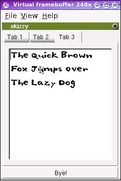 It should now compile, using the native compiler. To run it, start up QVFb, and simply select Build→Execute Main Program. The skizzy application should show up in QVFb.