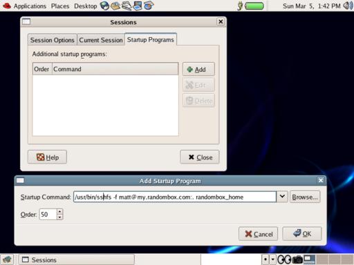 Figure 1. Set up a GNOME startup command to mount an SSHFS share.