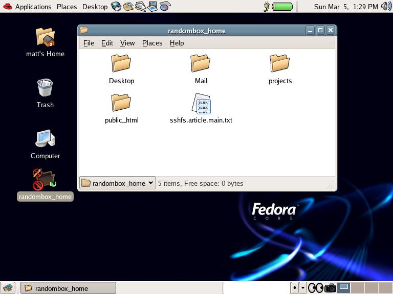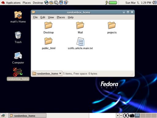 I am using Fedora Core 4 on the workstation where I will be mounting the remote directories. The remote system is also Fedora Core 4, but any *NIX system running a modern SSH server with the SFTP extension will work. Your Linux kernel also must have the user-space filesystems feature enabled, either built-in or as a module.