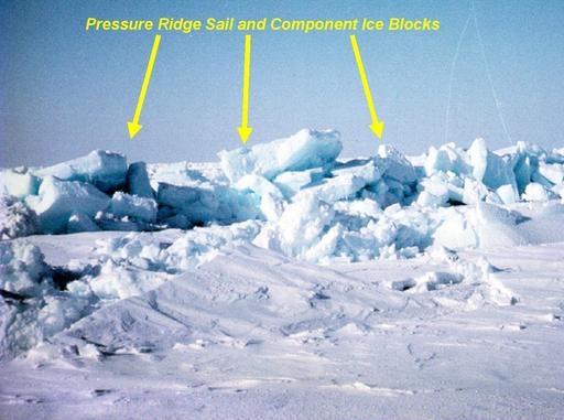 Figure 1. Ice pressure ridges form ice sails above sea level and ice keels below.
