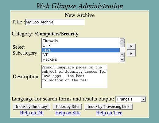 Figure 1. The New Archive screen allows you to enter a title and description, choose a category and select the language in which the search results should be presented.