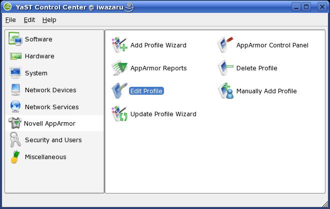 AppArmor has its own YaST module, called Novell AppArmor (Figure 1). As you can see, most of the applets in this module deal with creating and managing AppArmor Profiles. Each application protected (confined) by AppArmor must have its own AppArmor profile. Profiles can be created manually or by using the Add Profile and Update Profile Wizards or with the Manually Add Profile applet.