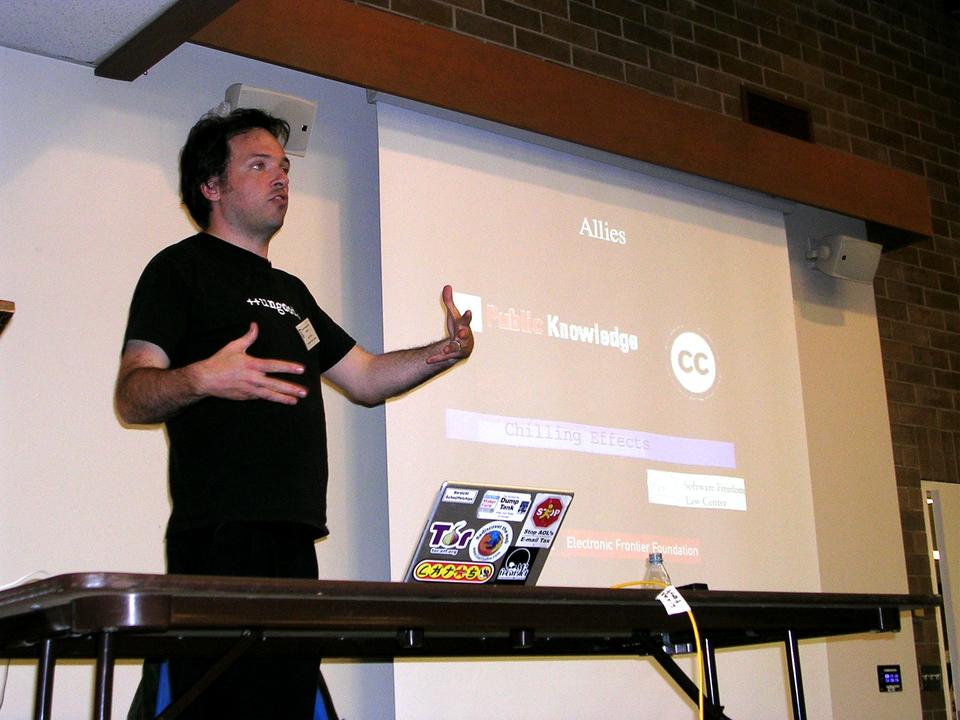 Danny O'Brien of the Electronic Frontier Foundation (EFF) gave a presentation called “Incoming! What's on the EFF's Radar”. He briefly explained the EFF and then covered the topics that the EFF currently is most worried about. He is a very engaging speaker.