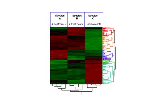 Figure 2. Hierarchical Cluster Diagram or “Heatmap” Showing Gene Expression, Protein and Metabolite Production Patterns