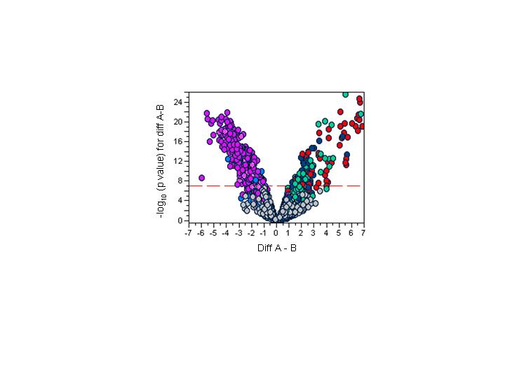 Figure 4. Bivariate Fit Volcano Plot for Comparing Gene Expression
