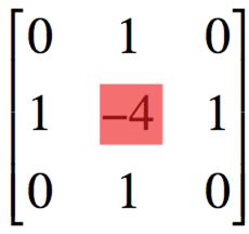 Figure 2. This matrix represents the edge detect filter. The red square represents the pixel to be considered, and the other numbers represent the neighboring pixels.