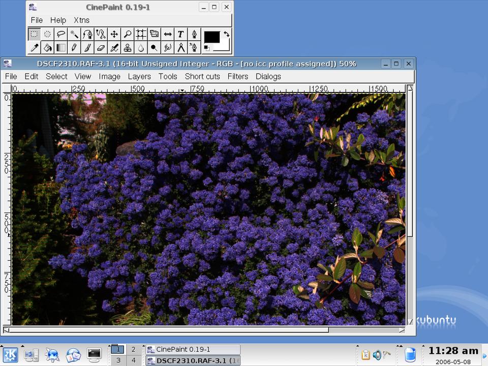 The discussion to this point has been concerned with getting pictures into the computer from an external source. Some mention has been made of manipulating images. Kooka, XSane, digiKam and F-Spot all can change the imported images to some degree, but to do more in-depth editing, it is necessary to use a dedicated image program. For this task, we look at The GIMP and CinePaint. The GIMP (GNU Image Manipulation Program) has been around since 1995 and is probably the most widely known open-source image program. CinePaint started as a fork of The GIMP in 1998, known as Film GIMP (also Hollywood GIMP and GIMP16) and acquired its current name in March 2003.