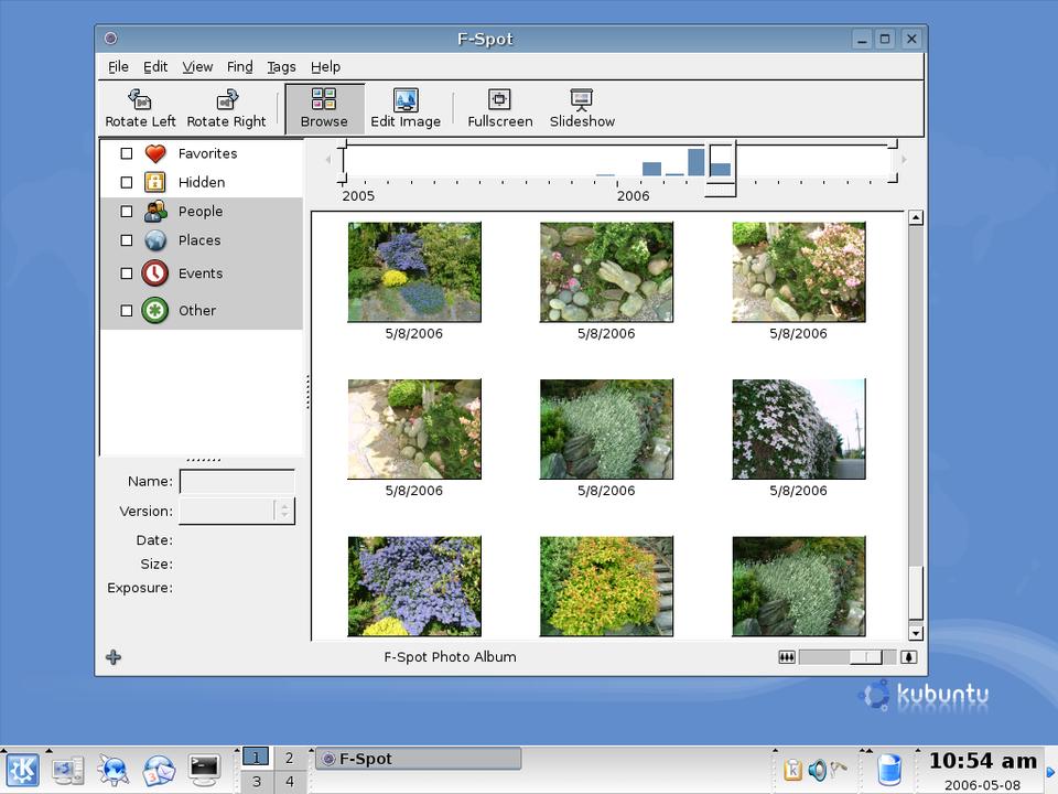 Figure 4. F-Spot showing downloaded images—note the time-line bar across the top.