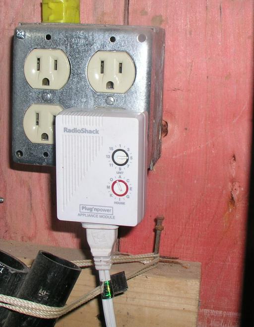 Figure 3. Radio Shack/X10 Appliance Module Controlling Circulator