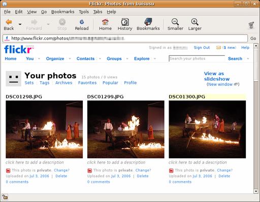 Uploading a large amount of photos to Flickr can take a long time, so it is best to upload in small batches. Slowness aside, uploading to Flickr is fairly painless and much easier than uploading the photos manually.