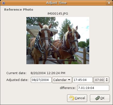 Fixing the date is easy; simply choose Adjust Time from the Edit menu. This brings up a dialog for adjusting the date down to the second (if that's what you want). You also can select a group of photos, say, from a party, and have F-Spot space them five or ten minutes apart automatically (or however many minutes apart you choose), which ensures that they stay in the proper sequence.