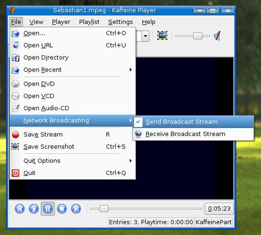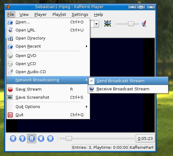 One of these is Jrgen Kofler and Christophe Thommeret's Kaffeine, a popular KDE media player. Kaffeine is generally thought of as a video player, but it also can serve up DVDs, VCDs, audio CDs or a variety of multimedia files stored on your system. Some Linux distributions that include the Kaffeine player also embed it in Konqueror for viewing on-line videos in Web pages. Kaffeine also has a broadcast feature. Click File on Kaffeine's menu bar, then navigate to Network Broadcasting, and select Send Broadcast Stream (Figure 3).