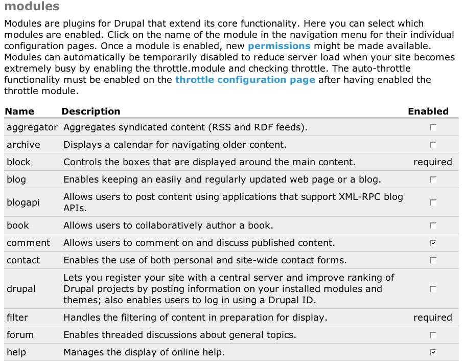 • 3) Modular architecture: Drupal's functionality is organized into modules that can be switched on and off. This approach makes it possible to build different kinds of Web sites with Drupal. If we were going to invest a lot of time into learning a CMS, it might as well be one that can be adapted for other projects as well.