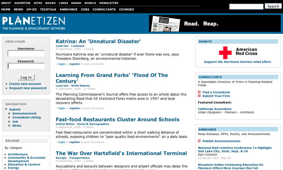 Planetizen is a community Web site for urban planners, architects, developers, environmentalists and other professionals. It offers daily news summaries, editorials, jobs and many other services. Launched in 2000, Planetizen has grown into a popular Web site with a large international audience. To manage a constantly updated Web site, such as Planetizen, a content management system (CMS) is a must. We had built our own custom CMS using PHP and MySQL in 2000. As the Web evolved, we wanted to add new features, but doing so meant expensive in-house development. So, we began looking at alternatives.