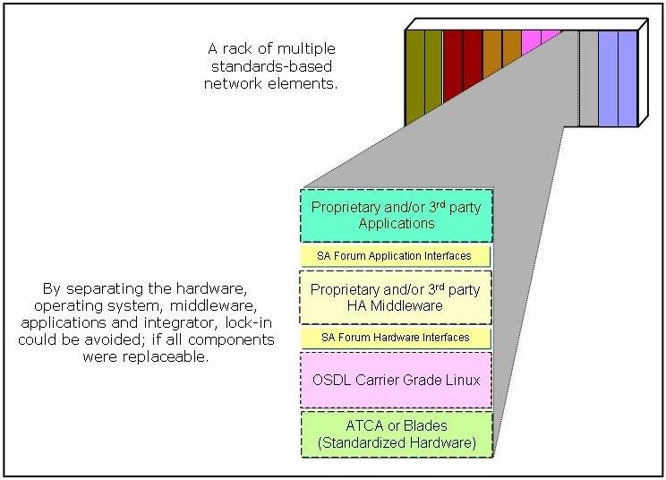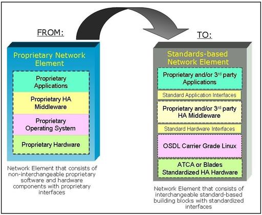 Traditionally, communications and data service networks were built on proprietary platforms that had to meet very specific requirements in areas such as availability, reliability, performance and service response time. Those proprietary systems were composed of highly purposed hardware, operating system and middleware and often included proprietary technologies and interfaces. Such proprietary approaches to system architecture fostered vendor lock-in, served to limit design flexibility and freedom and produced platforms that are very expensive to maintain and expand.