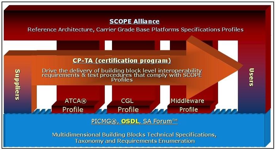 Figure 4. The .org Players: PICMG, OSDL, SA Forum, CP-TA and the SCOPE Alliance (courtesy CP-TA)
