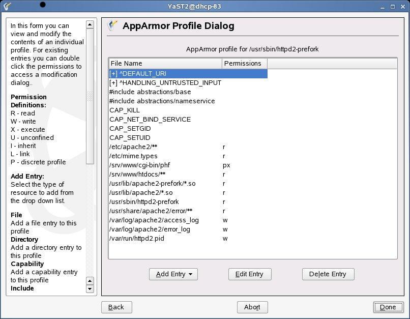 AppArmor strikes a reasonable balance between the complexity and power of SELinux and Linux's default “winner/root takes all” security model. With its wizard-based setup tools (integrated into SUSE's YaST system administration GUI), AppArmor makes it easy even for nonsecurity geeks to strengthen their mission-critical applications with kernel-level mandatory access controls.
