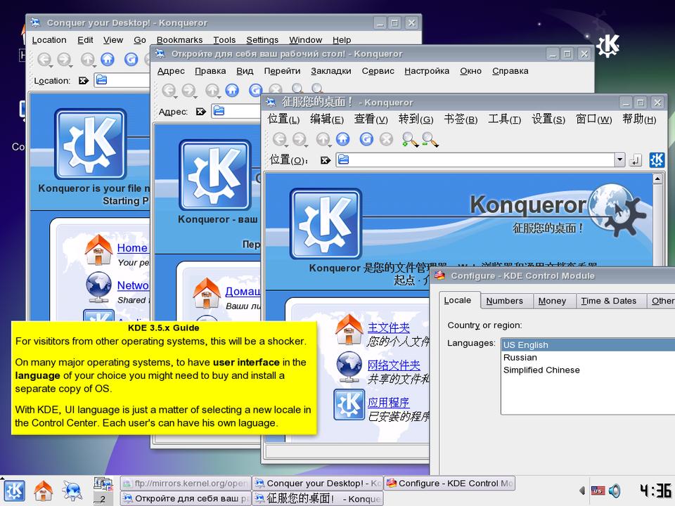 KDE is the desktop with everything. It is friendly, intuitive and simple enough for the casual user who wants to use it as-is, but it also packs nearly unlimited features and configurability for those who want to plumb the depths of its power. For example, click on the default Konqueror button, and it takes you to a default page with links to your home folder, network folders, applications, trash bin and storage media. Click on the home folder link, and you get a simple, intuitive, folder-based file manager.