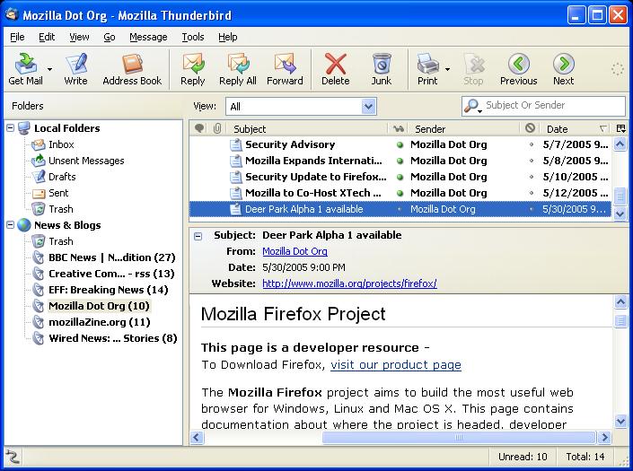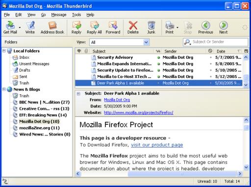 We ended up choosing Thunderbird for some of the same reasons we picked Firefox—extensibility. You may be satisfied with Thunderbird right “out of the box”. But are you frustrated when you get an e-mail with a URL that is broken into several lines so that you can't just click on it to bring up the Web page? Install the URL Link Thunderbird extension—problem solved. Is the default spam filter for Thunderbird failing to catch all your spam? Install the Spamato4Thunderbird extension—problem solved. Although there aren't as many extensions for Thunderbird as there are for Firefox, and the best expansion is yet to come (the Lightning calendar extension is still in the works). There's enough flexibility in what you can do with Thunderbird to make it suit almost any taste.