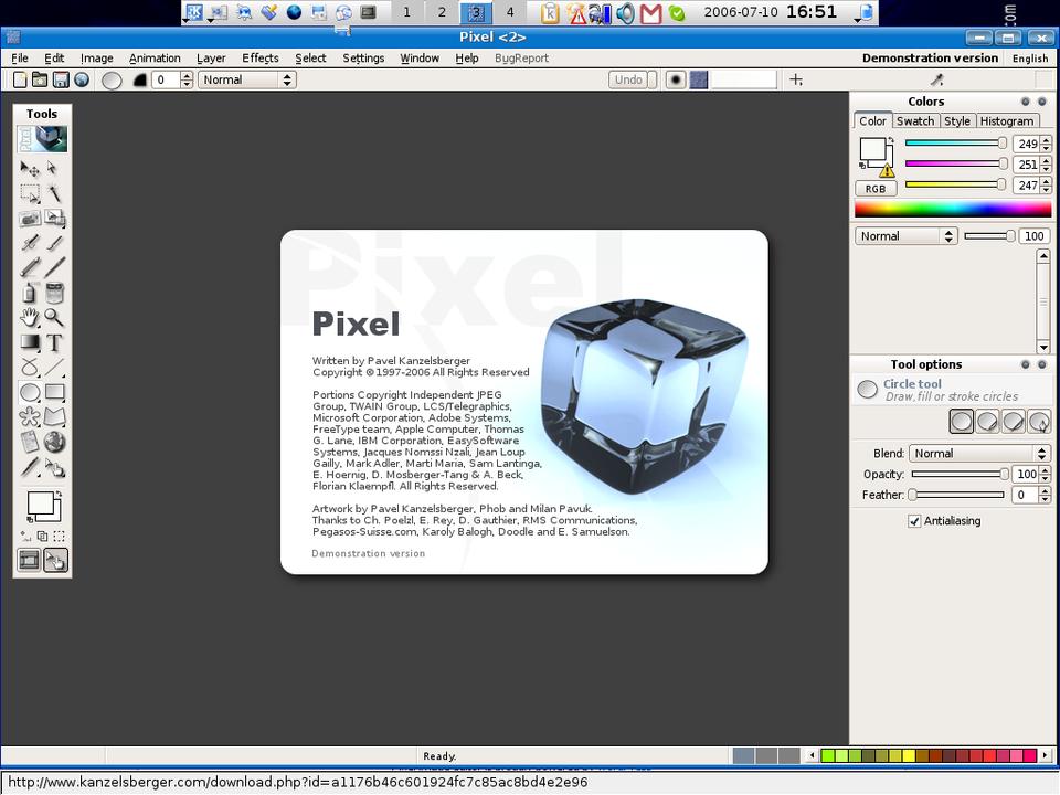 Because Pixel is not open source or free, it's not likely you will find it in a major distribution's repository. So, download a demo copy from www.kanzelsberger.com/pixel/?page_id=4. Installation is straightforward. Download the Linux .tar file, unpack it and click on the file to start program installation. Follow the instructions on-screen to finish the setup.