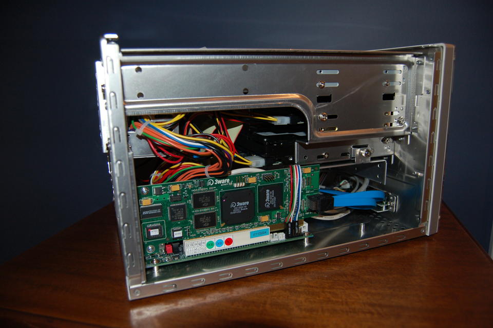 Finding a satisfactory RAID controller was extremely difficult. Many RAID controllers actually do their processing in operating system-level drivers rather than on a chip in the RAID controller card itself. The 3ware 8006-2LP SATA RAID Controller is a two-drive SATA controller that does its processing on the controller card. I acquired the 3ware 8006-2LP from Monarch Computer Systems for a total of $127.83 US, including shipping.