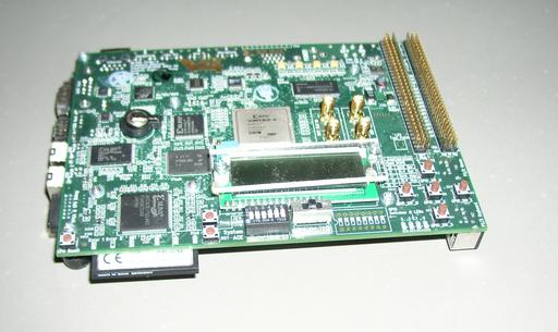 The E12 used a Xilinx Virtex 4 FX20 FPGA (Field Programmable Gate Array) that included a 300MHz PowerPC 405 processor, 128MB of memory and 64MB of Flash ROM. I bought a Macintosh Lombard PowerBook Laptop on eBay, as a sort of simulator for the E12. It also provided a way to write for the E12 without a cross compiler. While waiting for the E12 to progress far enough to start working with it, I scoured the Web for information about Linux porting and developed competence in PowerPC assembly language. Linux kernel programming is primarily in C, but small parts of the Linux kernel—parts critical to putting Linux on a new system are in assembler. I have programmed in many assemblers—once writing the standard C library in x86 assembler, but PPC assembler was new and took a day or two to learn. Linux had been ported to PowerPCs, even a different Xilinx FPGA, long ago.