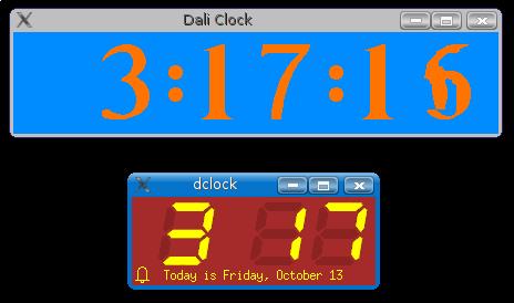 Figure 6. The very cool XDaliClock melts away the seconds, while dclock keeps somewhat more solid time.