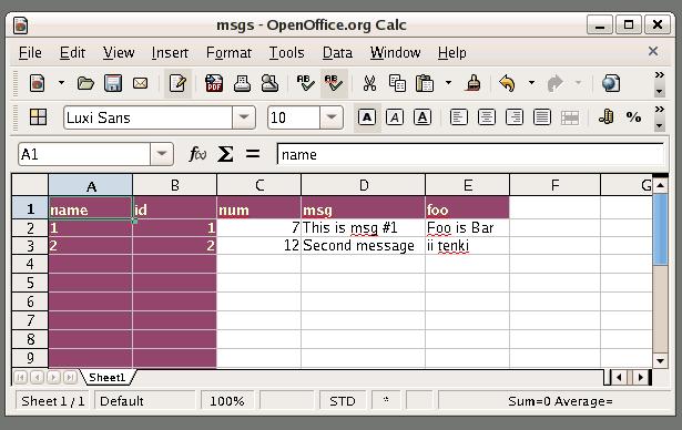 The final command in Listing 8 opens the virtual spreadsheet document, which should look similar to Figure 1. I then changed some data in the second row and saved the file giving the result shown in Figure 2.