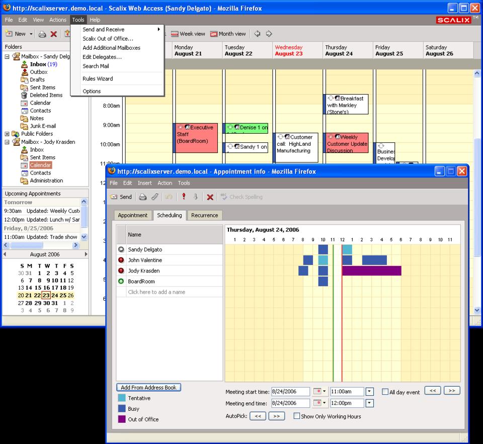 Our contacts at Scalix Corporation informed us about Scalix 11, the company's Linux-based, open-source supported messaging, e-mail and calendaring platform. Some of Scalix's main features include easy administration, “deep integration with legacy environments” and Outlook-level functionality without the costs and license lock-in of MS Exchange. Scalix's target customers are those requiring the “product integrity of an enterprise platform with the community support of an open-source project”. New features include two new Web services, a lightweight mobile client, enhanced management capabilities, and improved Web client and Outlook support. Vis-á-vis the new Microsoft Exchange Server 2007, Scalix claims advantages, such as “vendor choice, better administration and broader client selection while maintaining the best Outlook support in the market”. A trial of the commercial edition and a free community edition are available for download from Scalix's Web site.