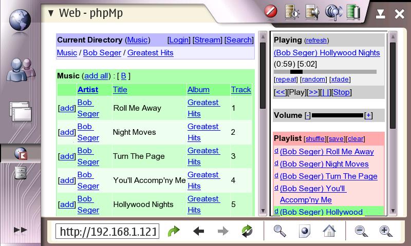The Nokia 770 is the perfect interface for this appliance. As its user base grows, so do the features and the amount of applications it can run. Developers across the world are porting more and more applications to it every day. In the future, I would like to see gmpc (GNOME Music Player Client) ported. gmpc is a GTK+ application that connects to and controls MPD. If gmpc were to be ported to the Nokia 770, lightTPD and phpMp no longer would be needed to control the appliance. The 770 could control it natively.