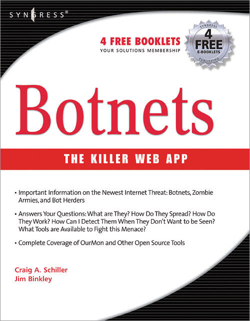 If battling botnets gives you nightmares, the new book Botnets: The Killer Web App may slay those pesky nocturnal dragons in your head. The book's mission is to arm you with useful information on botnets, zombie armies and bot herders, answering questions, such as “What are they? How do they spread? How do they work? How can I detect them when they don't want to be seen? What tools are available to fight this menace?” The main tools covered here are open source, with a focus on the network monitoring tool Ourmon.