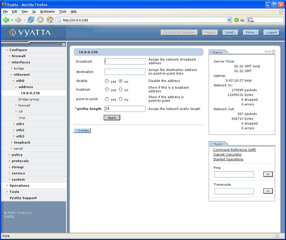 Vyatta's Open Flexible Router (OFR), upgraded recently to version 1.1, is an open-source LAN and WAN routing solution for small- to medium-sized businesses. OFR's product benefits include not only all standard routing protocols and high-availability and security features, but also the ability to customize the product and add features as needed. The latter feature gives users flexibility in managing future requirements on their own terms rather than relying on the actions of closed-source vendors. Vyatta also states that OFR allows one to deploy an “enterprise-class router for a fraction of the cost of a traditional closed-source, proprietary router”. This latest release adds support for T3 WAN connections and provides compatibility with third-party application packages from Debian GNU/Linux. Debian package compatibility extends OFR's capabilities to include third-party applications in the Debian universe, such as Openswan, Asterisk and ClamAV, among others. The OFR software is available for download from Vyatta's Web site.