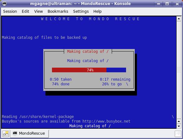 Figure 4. Mondo Rescue creates a catalog of files when starting the backup.