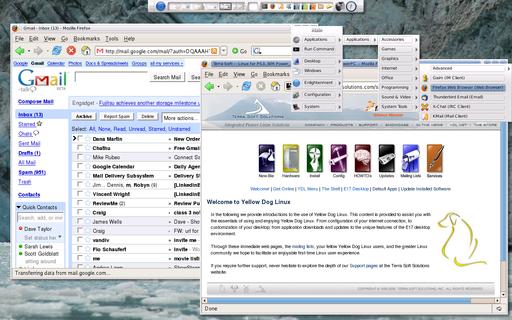 One of the sites I use as a test is Google's Gmail service. It's complex behind the scenes and quite powerful, so the question is always whether it works and renders properly on a new system. YDL came through like a champ, working just fine and letting me navigate through my e-mail securely through Firefox. Thunderbird is also pre-installed and ready to go, and configuring a POP3-based e-mail account is pretty straightforward for most Linux users, so there are at least two good avenues for accessing your e-mail.