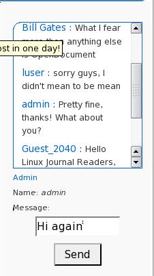 Figure 4. Shoutbox lets people chat without refreshing the page.