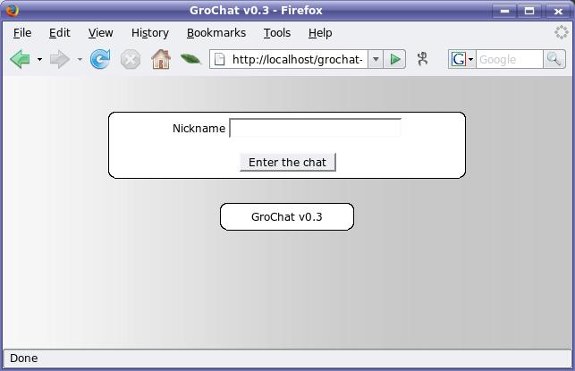 You also might verify that the Apache user and group both have write permission to these files. Other than that, your installation is complete. To use GroChat, simply connect using http://yourserver/grochat/. You'll find yourself at a simple login screen (Figure 2).