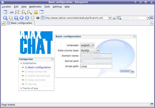 Figure 4. Once you have created your database, the remaining configuration steps are done via the AjaxChat Web interface.
