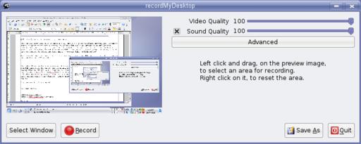 The next item on this star-studded menu, is John Varouhakis' recordMyDesktop, a desktop screencasting program that includes both a command-line tool and a graphical front end, gtk-recordMyDesktop. You can pick up a copy of gtk-recordMydesktop from recordmydesktop.sourceforge.net. For the purpose of this demonstration, I concentrate on the graphical client rather than the command-line version.