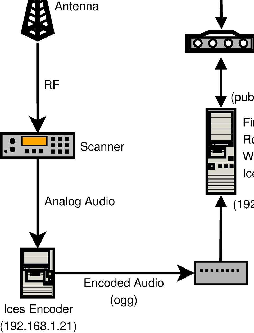 Retransmit from a radio scanner to the Internet via Ices and Icecast.