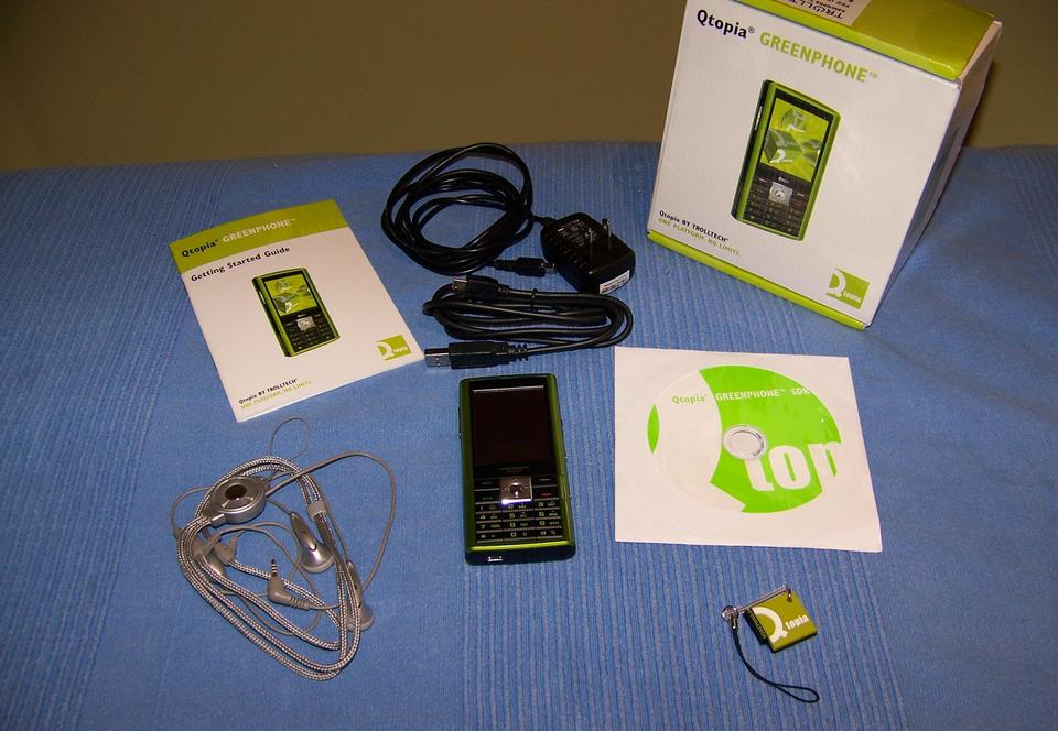 The Trolltech Greenphone is a full-featured tri-band GSM (900/1800/1900MHz) mobile phone with a built-in 1.3 megapixel camera. Like many other modern smartphones, it features a QVGA touchscreen, Bluetooth, client USB, mini-SD Flash and stereo audio connectors.