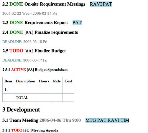 Figure 10. Project Planning with Org-mode