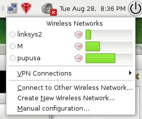 Figure 2. Left-click the NetworkManager applet to display and connect to available wireless networks.