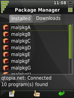 After configuring the Package Manager to see the feed server, Qtopia reads a plain-text file named packages.list on the server. This file contains a list of all the packages available on the server, the domains the package is requesting, as well as the description, name, maintainer, size, license and md5sum of every package.