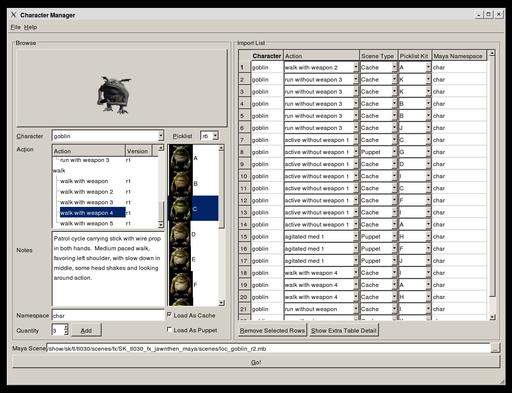 “Creature Picklist is a GUI-based Maya plugin for creatures that allows animators to see visual representations of character, which they can select for their scene”, says Darling. “In the case of Spiderwick, 'Goblin kits' were created as combinations of variants and blendshapes. We have shots that have more than 100 goblins. That's too many to animate using traditional methods. The numbers are also too small to make a commercial crowd system, such as Massive, a viable solution. We developed our own system called Swarm. For the Spiderwick shots, we instanced around 150 goblins and managed animation clip data to animate them as particles.”