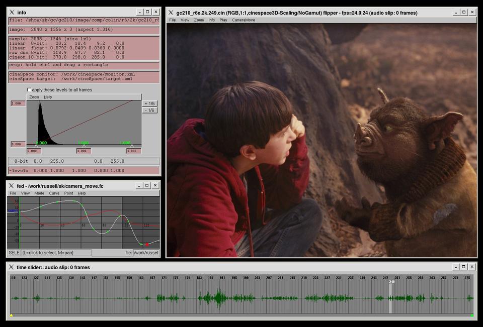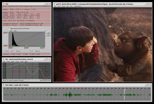 “I originally met [SpecSoft partners] Jason and Ramona Howard at a Linux Movies meeting in Berkeley, shortly after I joined Tippett Studio”, says Darling. “At that time, we were looking at developing a new dailies system. They had developed a Linux driver for the AJA Kona HD/SD card and had developed some DDR and editing tools. We were able to form a great relationship with SpectSoft where we provided specifications and requirements to them in order to help create a system that suited our purposes.” LinuxMovies.org is an association of Linux motion-picture technologists founded in 2002 [by Robin Rowe, author of this article].