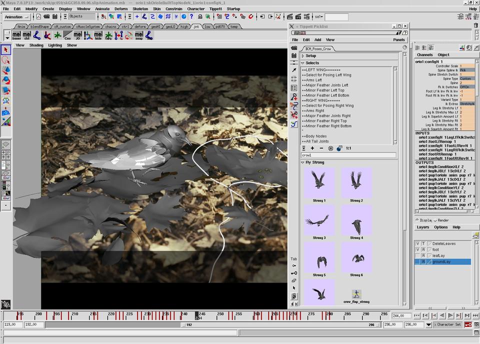 Figure 5. Tippett Studio's Picklist allows an animator to select specific predefined poses for creatures, such as this bird.