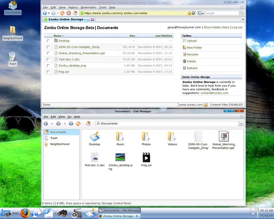 Figure 3. Zonbu keeps recent files in its 3GB local cache. Other files reside in on-line storage if you subscribe to a storage and maintenance plan.