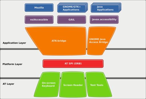 After you have asked yourself all of the above questions and provided satisfactory answers, it's time to see whether your application provides the proper instrumentation to assistive technologies, such as Orca. The functionality and state of your application are provided to the assistive technology through a CORBA-based framework called AT-SPI (Assistive Technology Service Provider Interface). From your application's side, the communication with assistive technologies is done with a library called ATK (Accessibility Toolkit), which allows you to create Accessible objects that are synonymous with your graphical widgets.